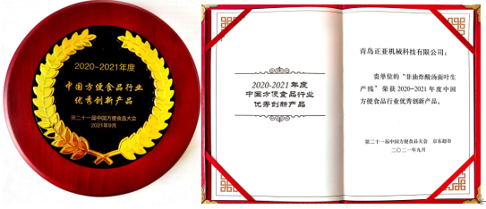 大會(huì)邀請多位行業(yè)專家及龍頭企業(yè)代表從多角度多方位剖析了行業(yè)面臨的現(xiàn)狀,展望行業(yè)未來發(fā)展。青島正亞機(jī)械科技有限公司很榮幸參加,并憑借“非油炸酸湯面葉生產(chǎn)線”榮獲“中國方便食品行業(yè)優(yōu)秀創(chuàng)新產(chǎn)品”獎(jiǎng)項(xiàng)。